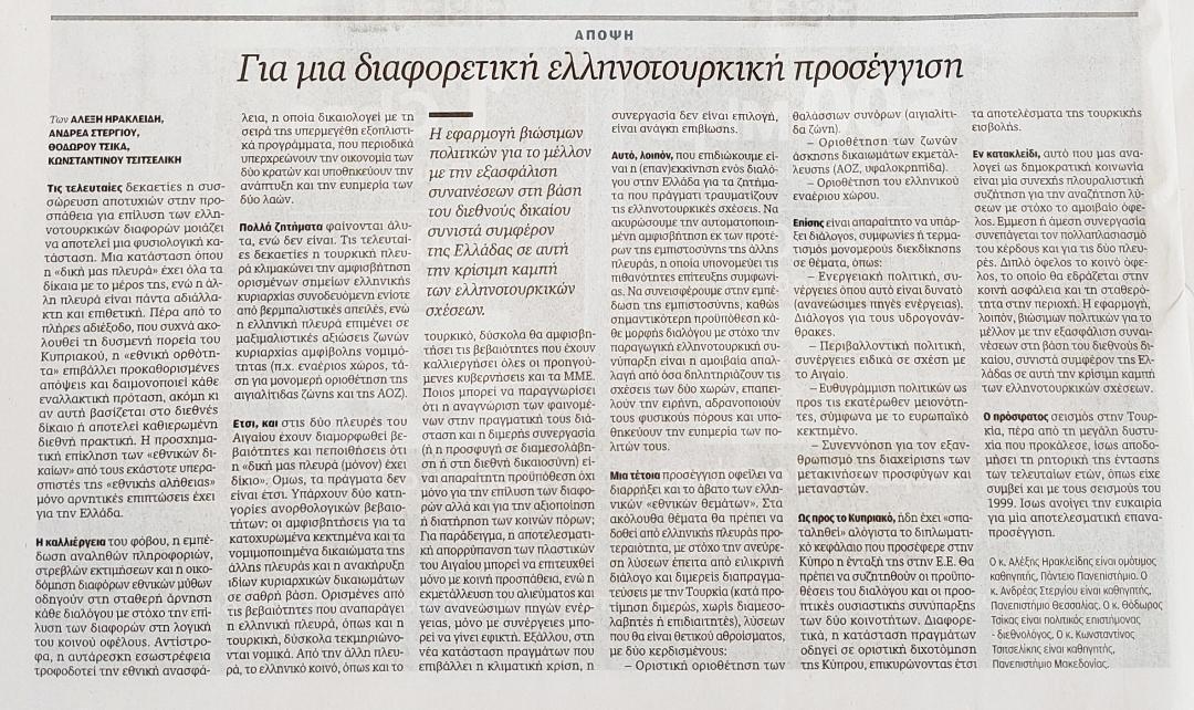 Για μια διαφορετική ελληνοτουρκική προσέγγιση: