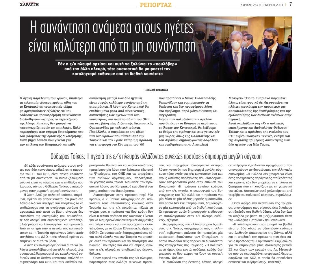 ΣΥΝΕΝΤΕΥΞΗ ΣΤΗΝ ΕΦΗΜΕΡΙΔΑ ΚΥΡΙΑΚΑΤΙΚΗ "ΧΑΡΑΥΓΗ" ΚΥΠΡΟΥ ΓΙΑ ΚΥΠΡΙΑΚΟ ΚΑΙ ΕΛΛΗΝΟΤΟΥΡΚΙΚΑ (26/9/2021), KAI ΣΤΟΝ ΔΗΜΟΣΙΟΓΡΑΦΟ Costas Pitsilloudes